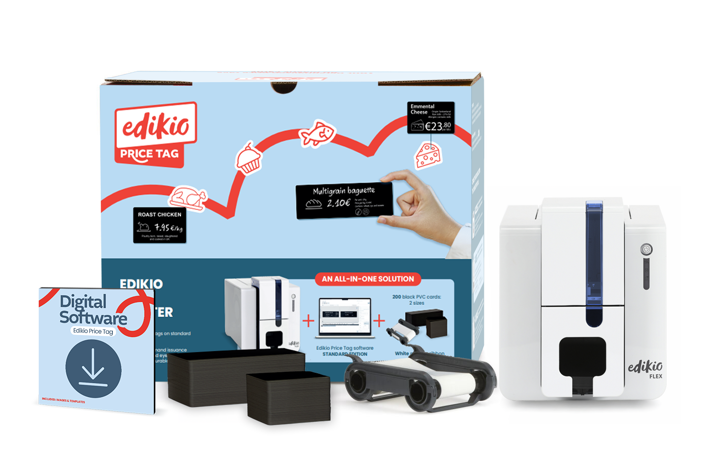 Edikio Price Tag propone soluzioni all-in-one pronte all’uso per i punti vendita. Ogni kit include: